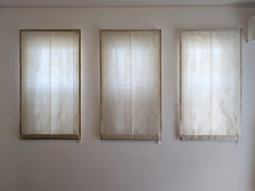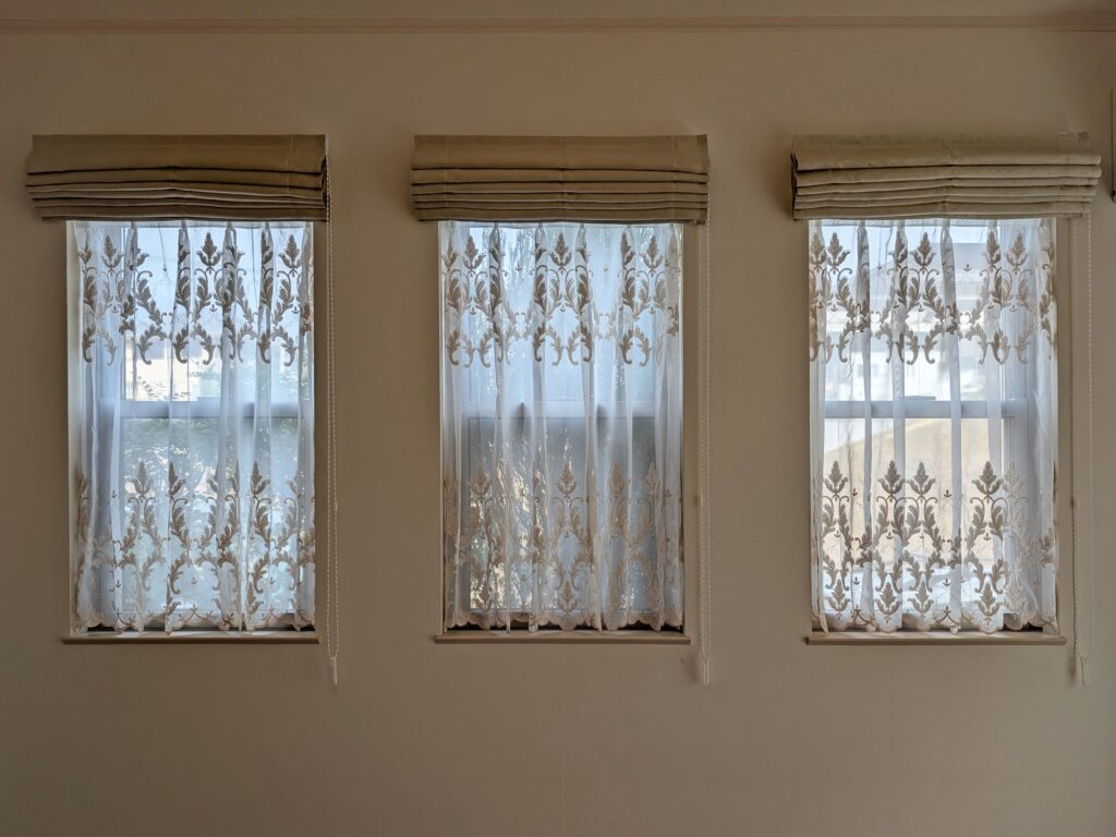 リビング3連窓にプレーンシェード&レースカーテン(宇治市)