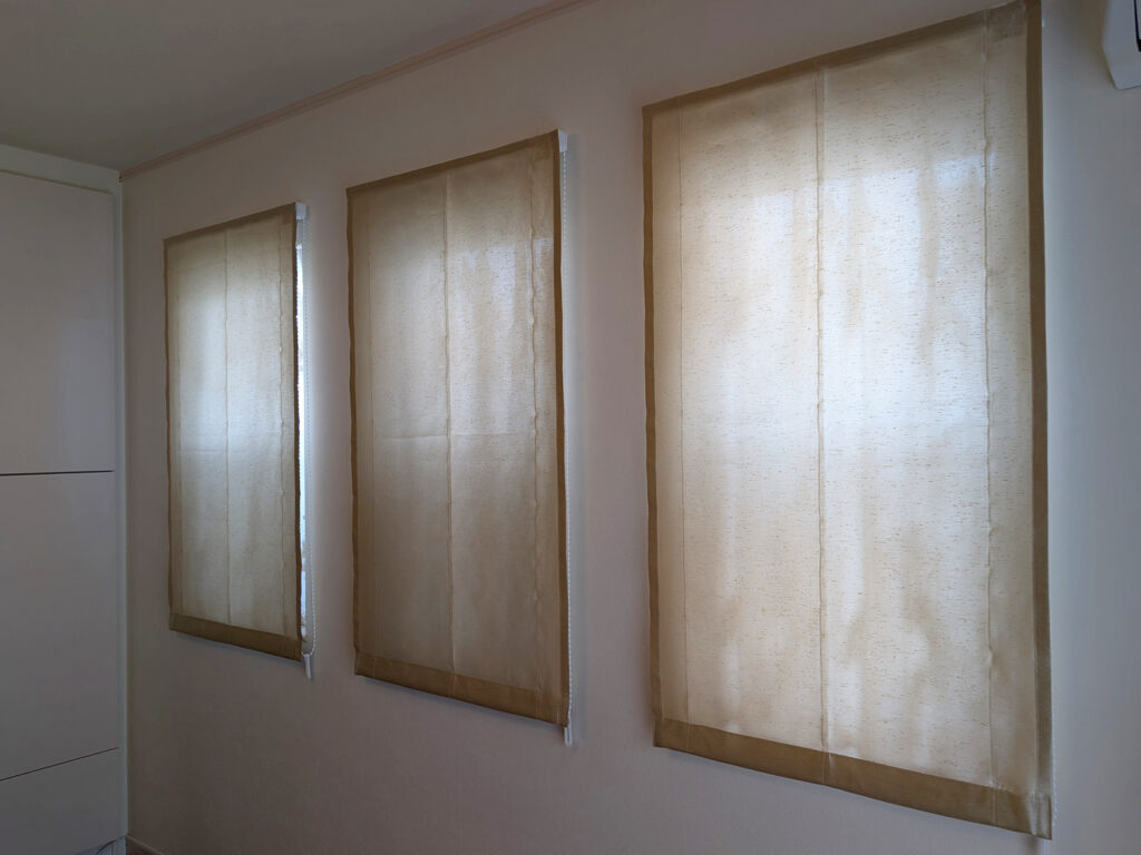 3. リビング3連窓にプレーンシェード&レースカーテン(宇治市)