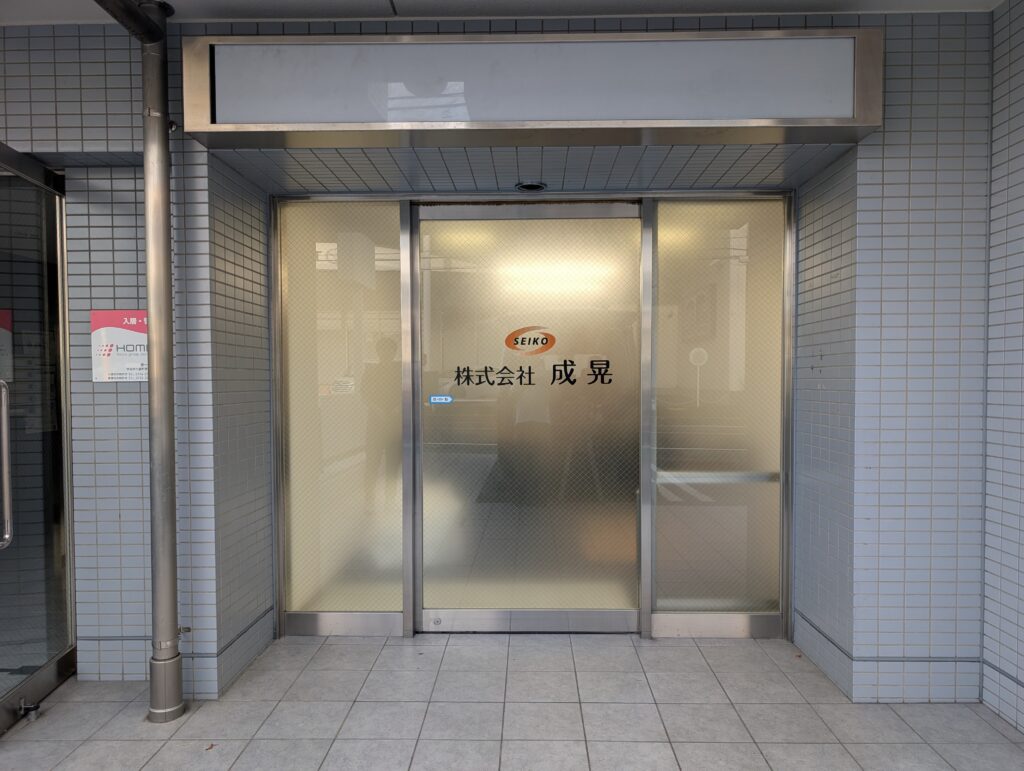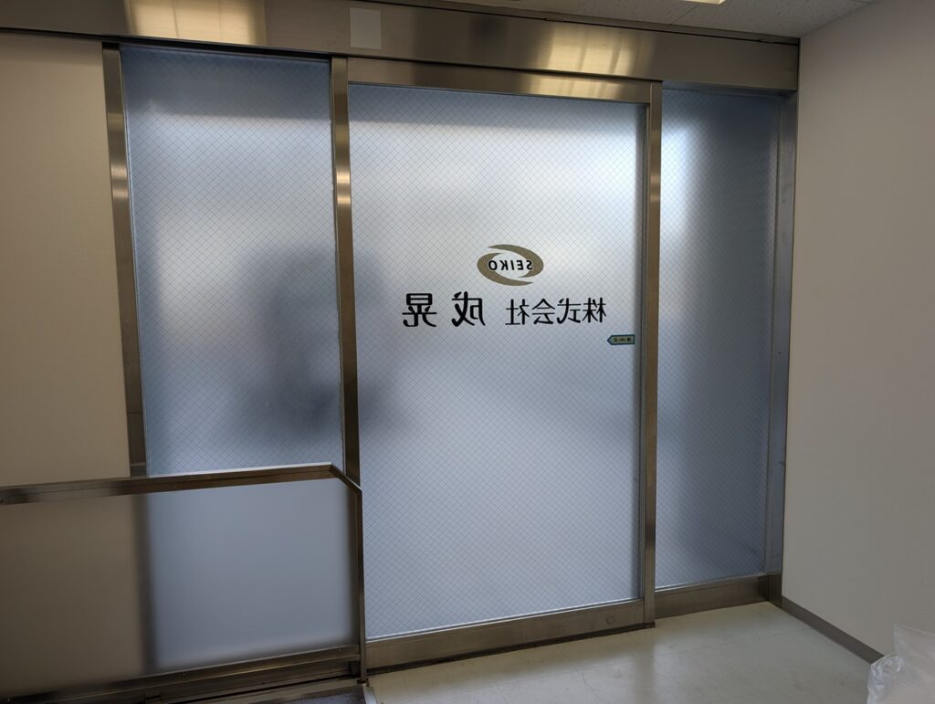 新事務所の入り口ガラス面に中が見えないようにガラスフィルム