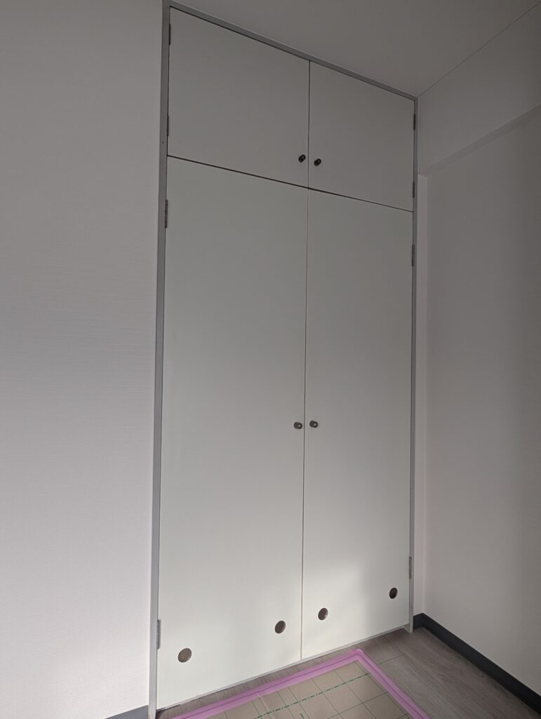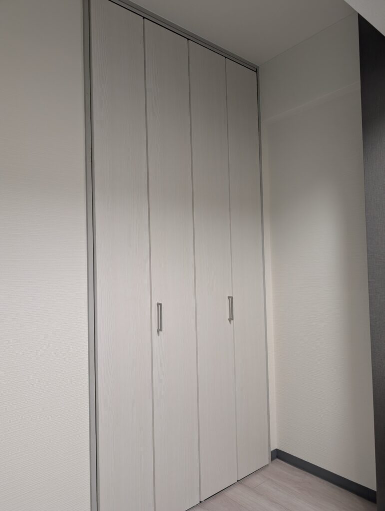 既存の開き戸を折戸にしたいとの御希望でしたので既存の枠はそのままで